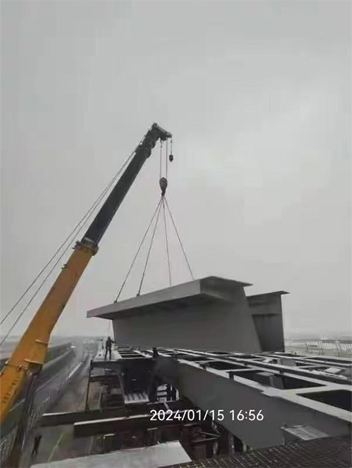 陜西重型機(jī)械制造有限公司承擔(dān)的航站樓出場道路高架橋項目中的400多塊鋼箱梁,其中50%以上的鋼箱梁為新式疊合梁,該疊合梁的結(jié)構(gòu)復(fù)雜程度和單件重量以及多變的外形,為陜重公司的首次加工和安裝,技術(shù)難度大。該項目的參建,對陜重公司鋼結(jié)構(gòu)橋梁的制作和安裝具有劃時代意義。